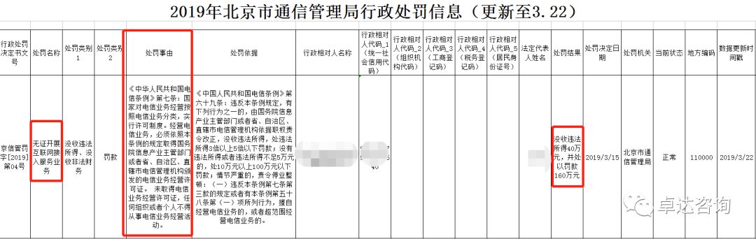 从发文可以看出,企业从事增值电信业务,无证经营,没收40万,罚款160万。